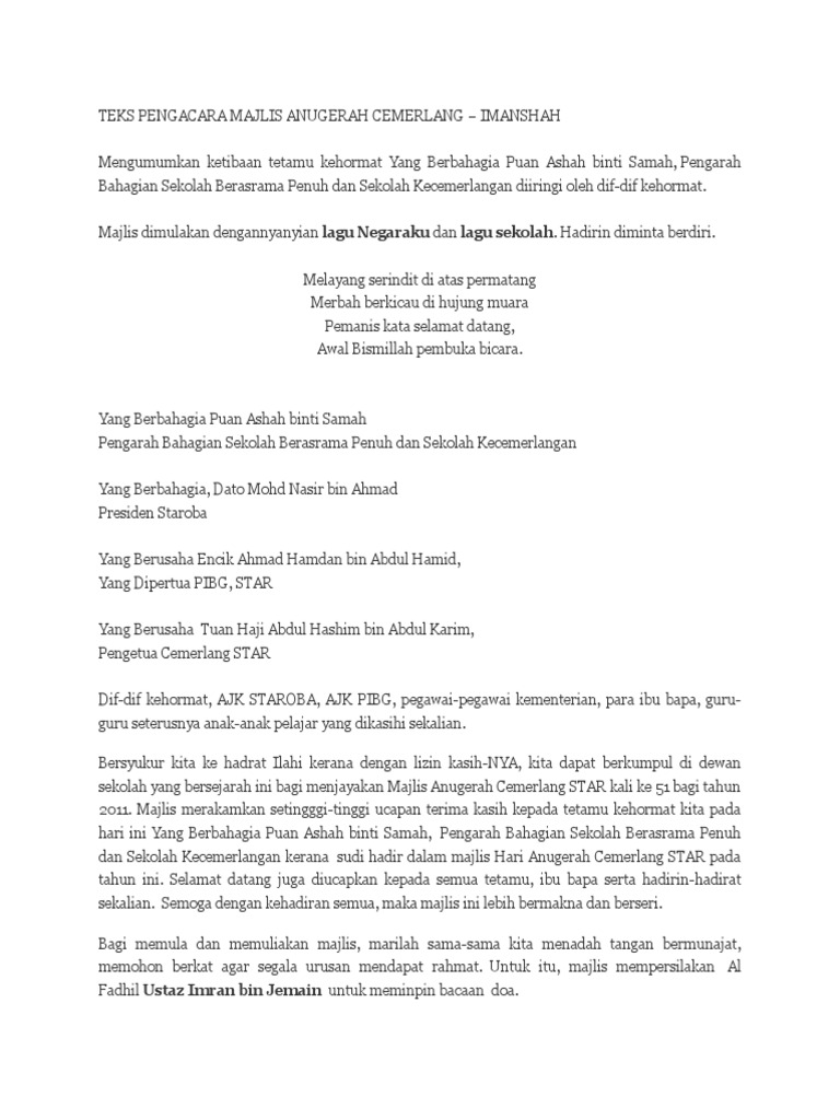 Teks Pengacara Majlis Hari Anugerah Cemerlang Pdf